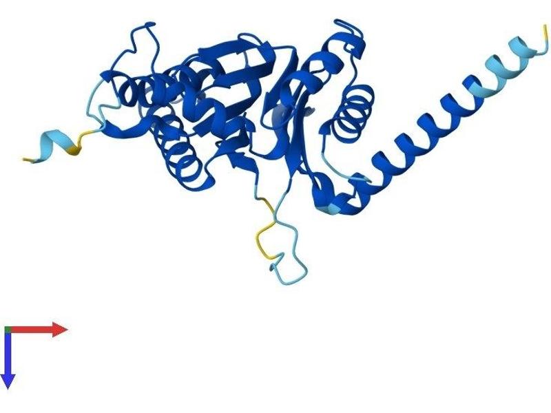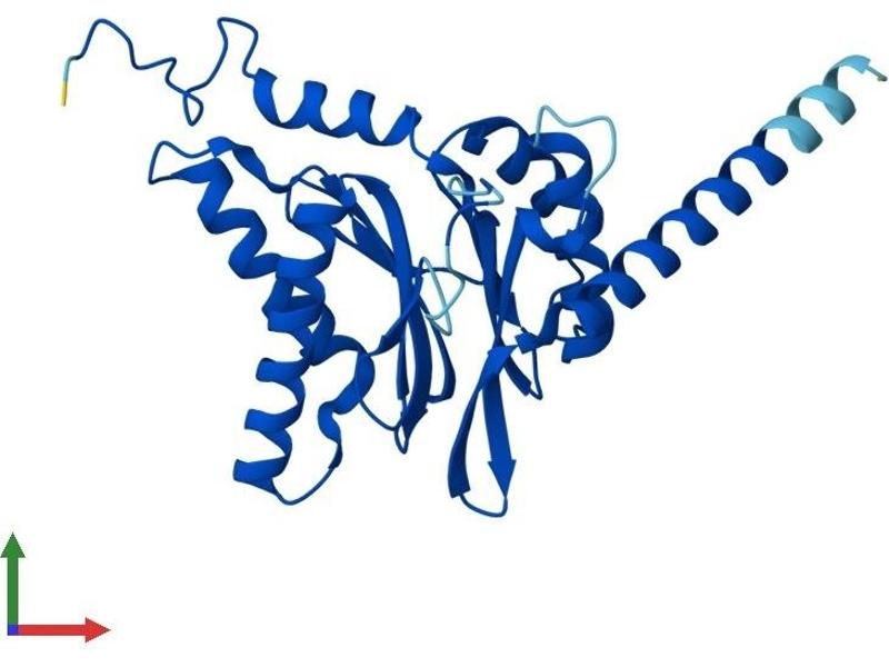 The proteasome is a multicatalytic proteinase complex with a highly ordered ring-shaped 20S core structure. The core structure is composed of 4 rings of 28 non-identical subunits\; 2 rings are composed of 7 alpha subunits and 2 rings are composed of 7 beta subunits. Proteasomes are distributed throughout eukaryotic cells at a high concentration and cleave peptides in an ATP/ubiquitin-dependent process in a non-lysosomal pathway. An essential function of a modified proteasome, the immunoproteasome, is the processing of class I MHC peptides. This gene encodes a member of the peptidase T1A family, that is a 20S core alpha subunit. Three alternatively spliced transcript variants encoding different isoforms have been found for this gene. [provided by RefSeq, Jul 2008].