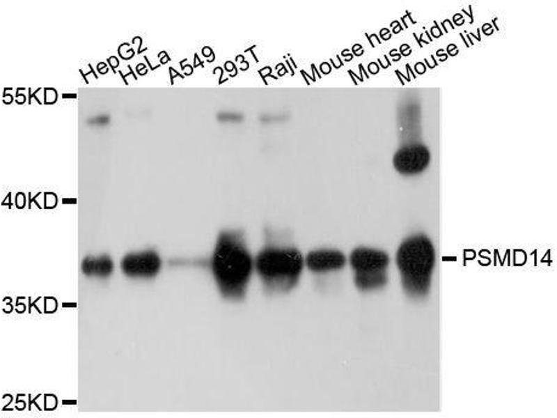 proteasome 26S subunit, non-ATPase 14 (PSMD14) Antibodiesproteasome (prosome, macropain) 26S subunit, non-ATPase, 14 (Psmd14) Antibodies
