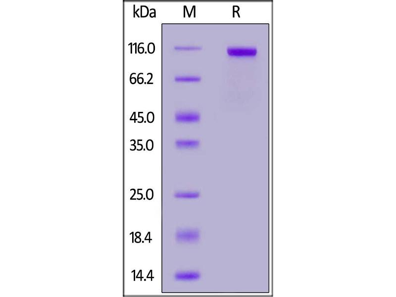 The purity of the protein is greater than 90 % as determined by SDS-PAGE and Coomassie blue staining.