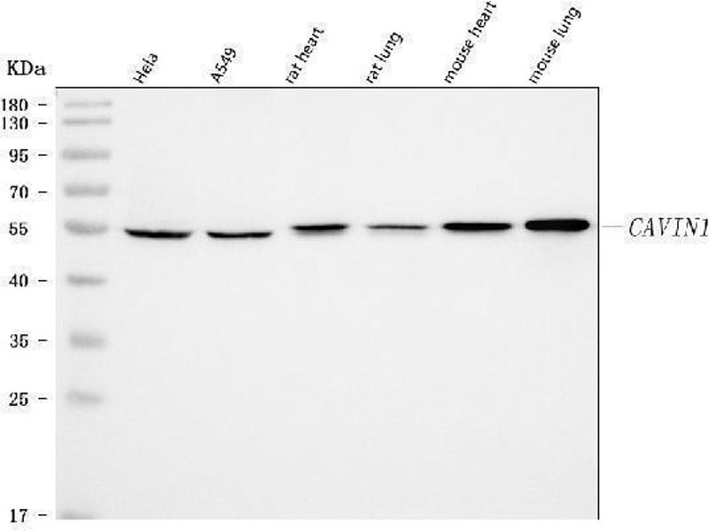 PTRF Reactivity: Human, Mouse, Rat, Horse, Monkey WB Host: Rabbit Polyclonal unconjugated