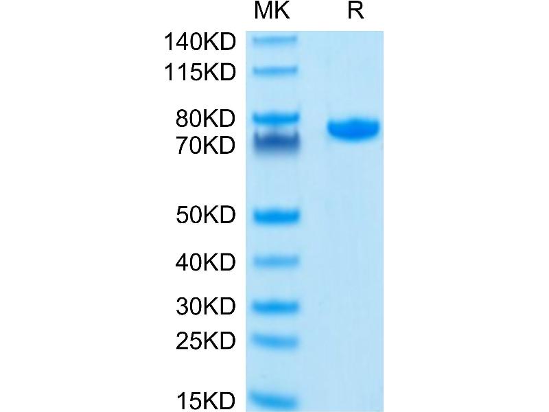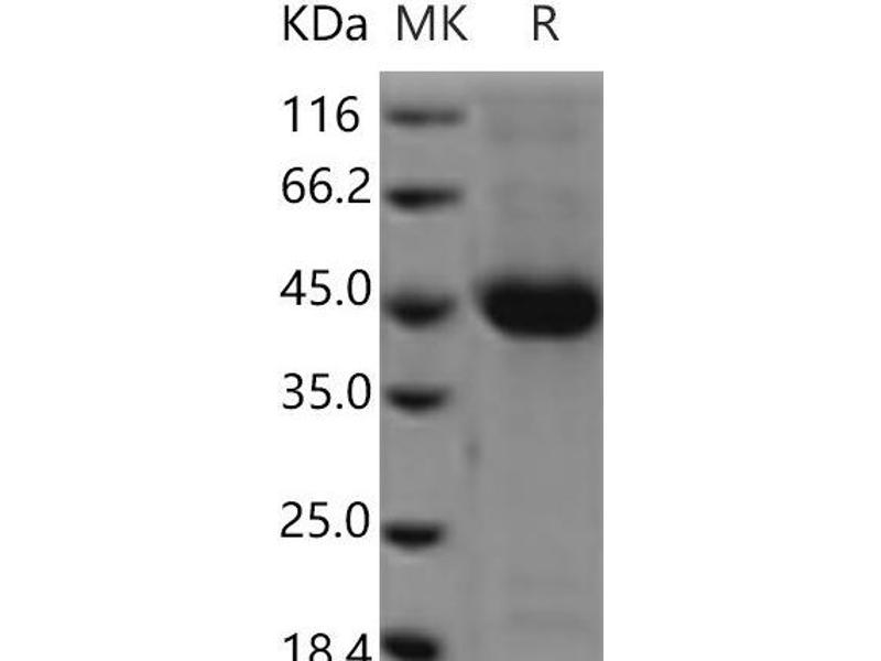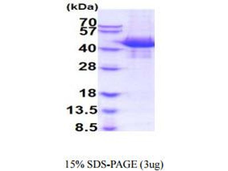 The purity of the protein is greater than 95 % as determined by SDS-PAGE and Coomassie blue staining.