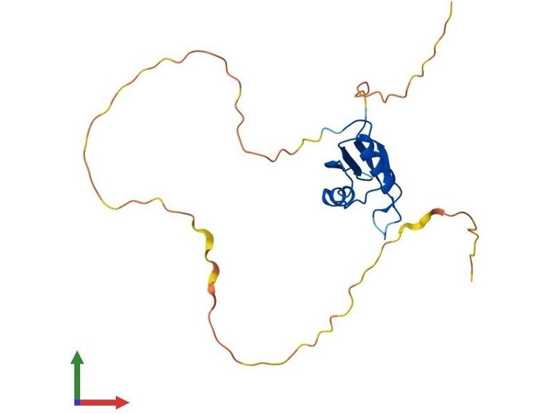 This gene encodes a member of the RRM family of RNA-binding proteins. The RRM domain is between 80-100 amino acids in length and family members contain one to four copies of the domain. The RRM domain consists of two short stretches of conserved sequence called RNP1 and RNP2, as well as a few highly conserved hydrophobic residues. The protein encoded by this gene has a single, putative RRM domain in its N-terminus. Alternative splicing results in multiple transcript variants encoding different isoforms. [provided by RefSeq, Jul 2008].