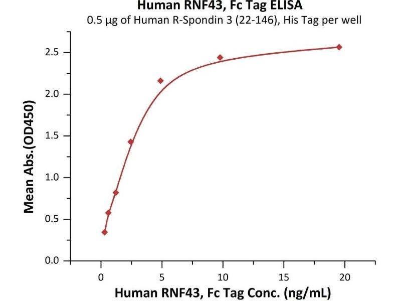 RNF43 is a HAP95 (AKAP8L\; MIM 609475) binding ubiquitin ligase that promotes cell growth and is upregulated in colon cancer (Yagyu et al., 2004 [PubMed 15492824]\; Sugiura et al., 2008 [PubMed 18313049]).[supplied by OMIM, Dec 2008].