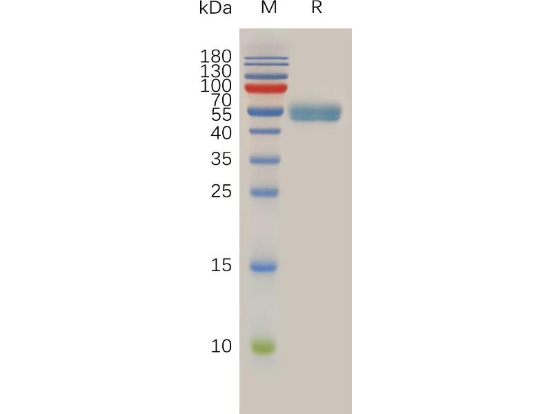 The purity of the protein is greater than 95 % as determined by SDS-PAGE and Coomassie blue staining.