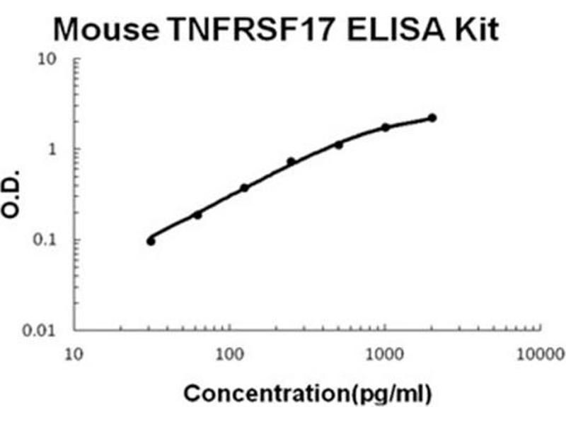 Rockland koa0379 TNFRSF17 Reactivity: Mouse Colorimetric Sandwich ELISA 31.2 pg/mL - 2000 pg/mL Cell Culture Supernatant, Plasma (EDTA - heparin), Serum