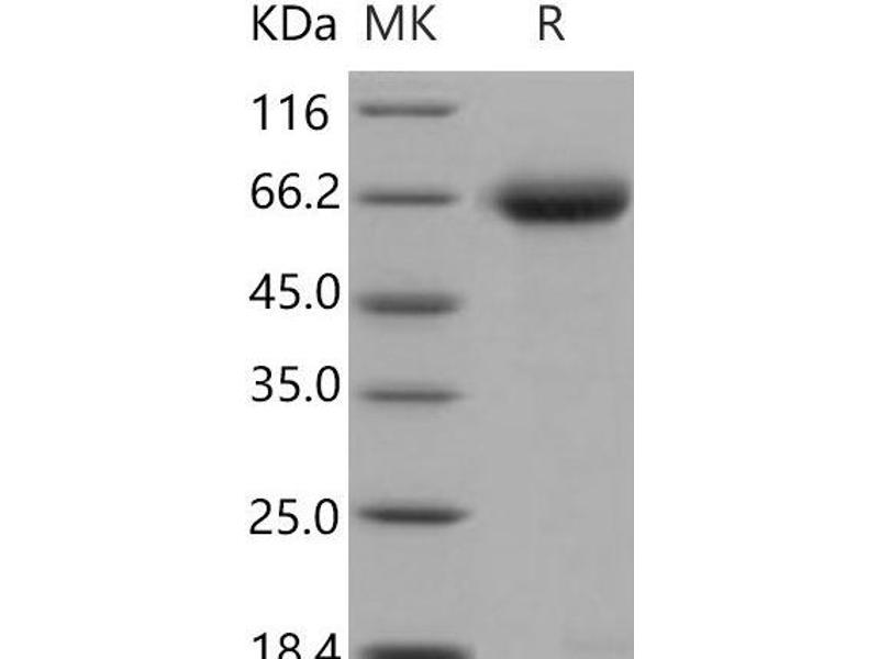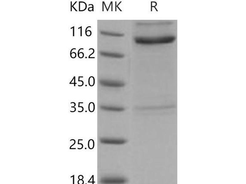 The purity of the protein is greater than 85 % as determined by SDS-PAGE and Coomassie blue staining.