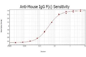- Application Note: Anti-Mouse IgG F(c) fragment has been tested by ELISA, dot blot, and wester blot and is suitable for use in immunoelectrophoresis, western-blot, competitive western-blot, ELISA and competitive ELISA assays. Specific conditions for reactivity and signal detection should be optimized by the end user. Immunohistochemistry Dilution: 1:1,000 - 1:5,000 Western Blot Dilution: 1:2,000 - 1:10,000 ELISA Dilution: 1:20,000 - 1:50,000 Other: User Optimized
