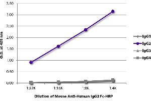 - Reacts with the Fc portion of the heavy chain of human IgG2 as demonstrated by ELISA