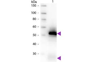 - Secondary antibody was prepared from monospecific antiserum by immunoaffinity chromatography using Rabbit IgG coupled to agarose beads followed by solid phase adsorption(s) to remove any unwanted reactivities.