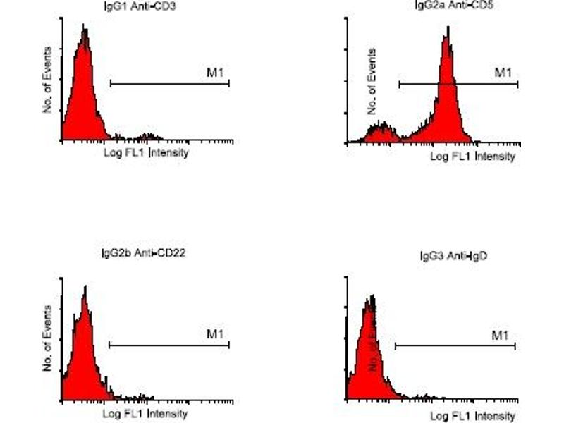 Flow Cytometry: < / = 1 μg/10^6 cells. Identification and enumeration of IgG2a+ cells. Immunofluorescence Microscopy: Identification and enumeration of IgG2a+ cells. Also used as a second step reagent for mouse IgG2a monoclonal antibodies.