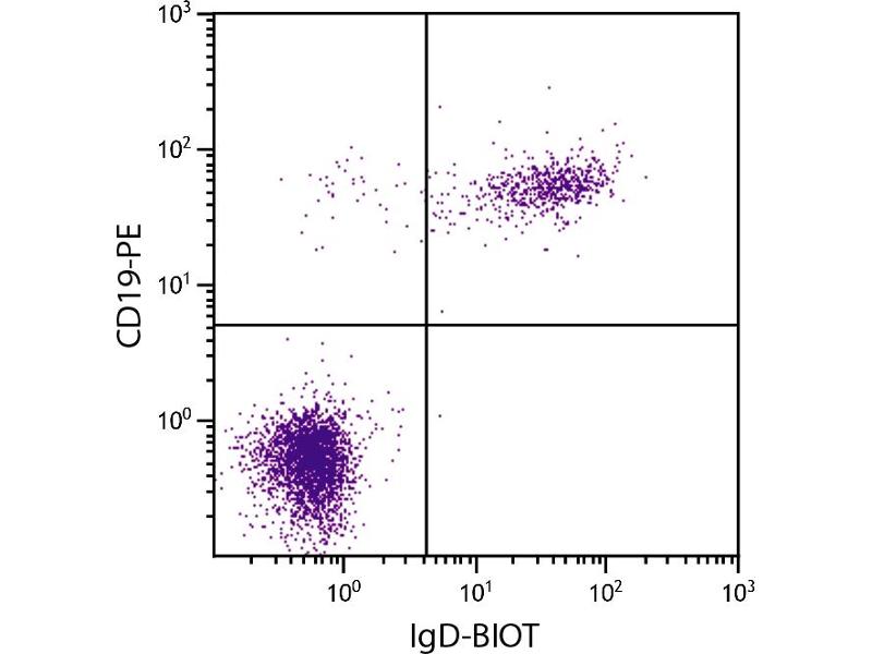 - Reacts with the heavy chain of human IgD as demonstrated by ELISA and flow cytometry.
