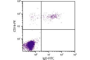 - Reacts with the heavy chain of human IgD as demonstrated by ELISA and flow cytometry.