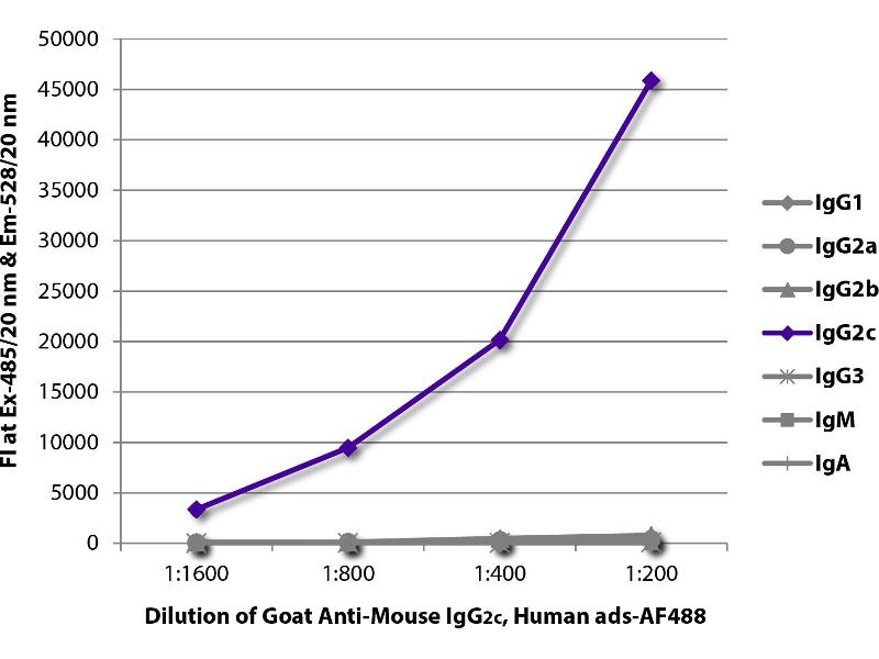 - Reacts with the heavy chain of mouse IgG 2c as demonstrated by ELISA.
