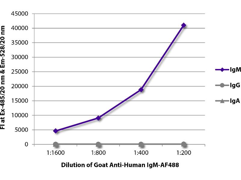 - Reacts with the heavy chain of human IgM as demonstrated by ELISA and flow cytometry.
