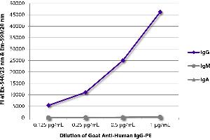- Reacts with the heavy chain of human IgG as demonstrated by ELISA and flow cytometry.