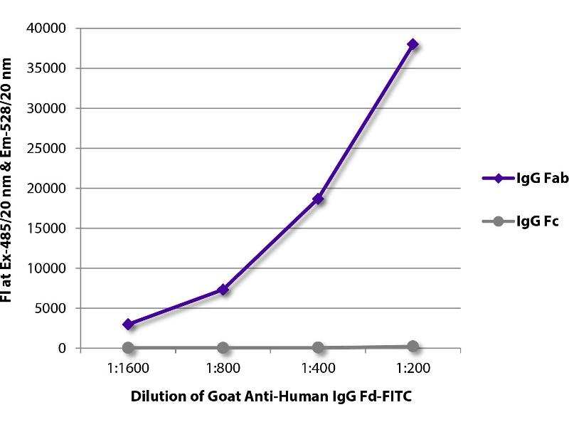 Reacts with the Fd region of human IgG as demonstrated by ELISA. Minimal reaction to the Fc region of human IgG and other human immunoglobulins.
