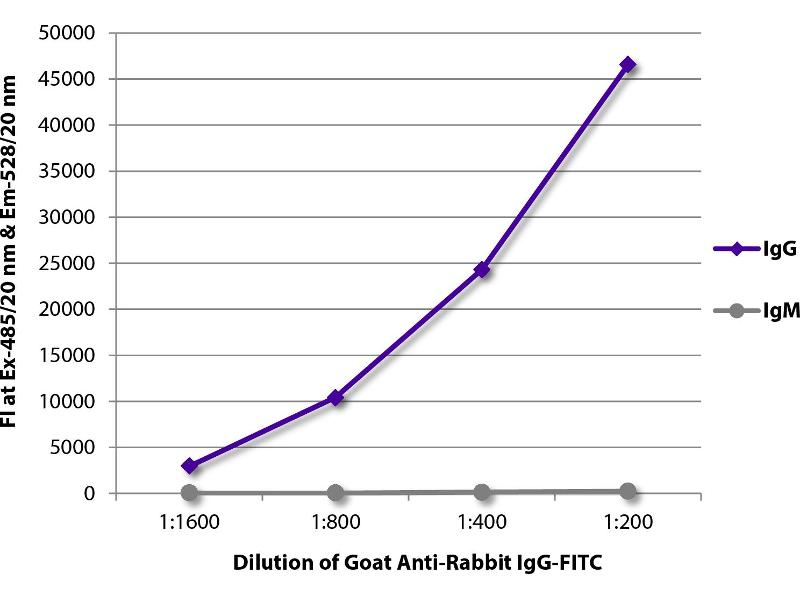 - Reacts with the heavy chain of rabbit IgG as demonstrated by ELISA.
