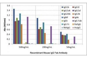 - This recombinant Mouse IgG Fab antibody reacts to the Fab region of Mouse IgG, including IgG1, IgG2a, IgG2b, and IgG3. No cross reactivity with IgM, IgA, IgE, human IgG, rat IgG, or rabbit IgG.
