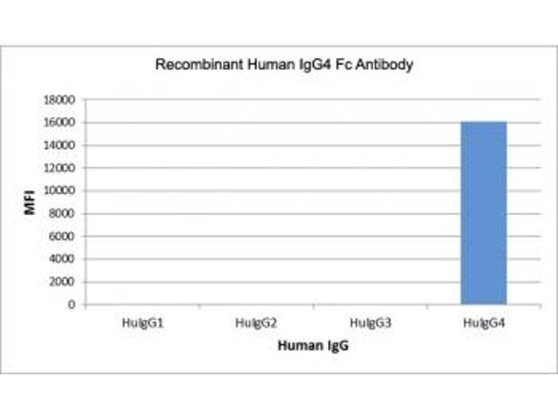 - This recombinant Human IgG4 Fc antibody reacts to the Fc region of hIgG4. No cross reactivity with human IgG1, IgG2, IgG3, IgM, IgA, IgD, IgE, mouse/rat/goat IgG.