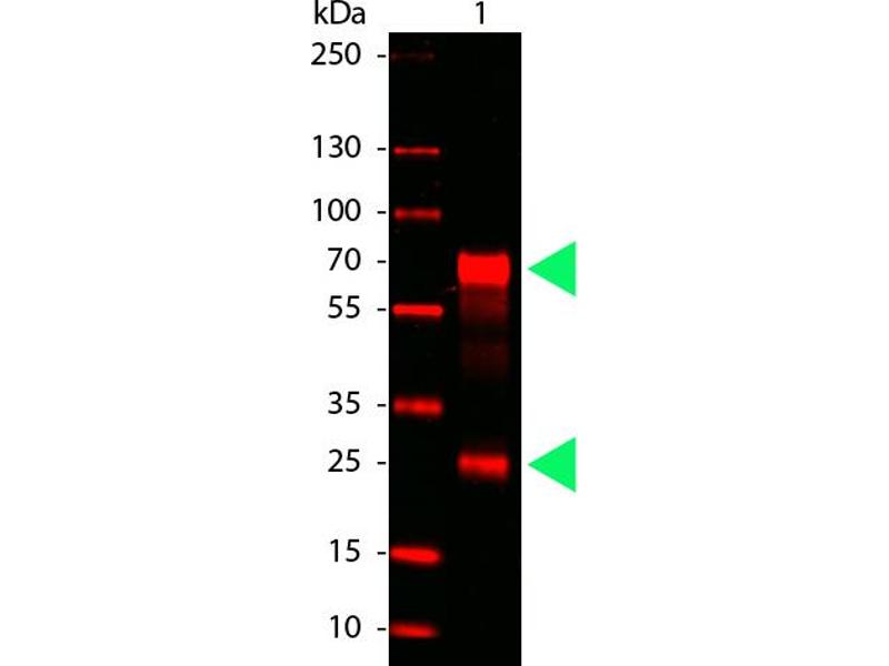 Anti-Chicken IgG DyLight680 has been tested by dot blot and western blot. This product is designed for immunofluorescence microscopy, fluorescence based plate assays (FLISA) and fluorescent western blotting. This product is also suitable for multiplex analysis, including multicolor imaging, utilizing various commercial platforms. The emission spectra for this DyLight™ conjugate match the principle output wavelengths of most common fluorescence instrumentation.
