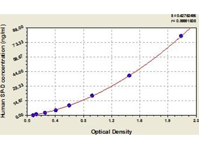 Wide Range SFTPD Reactivity: Human Colorimetric Sandwich ELISA 6.25 ng/mL - 400 ng/mL Cell Culture Supernatant, Cell Lysate, Lung Lavage Fluid, Plasma, Serum, Tissue Homogenate