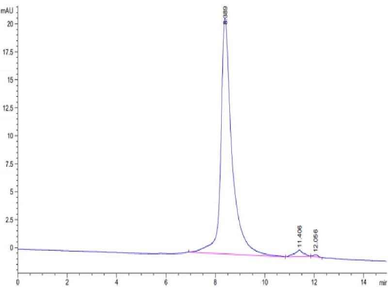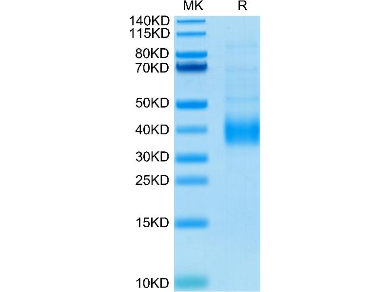 The purity of the protein is greater than 95 % as determined by SDS-PAGE and Coomassie blue staining.