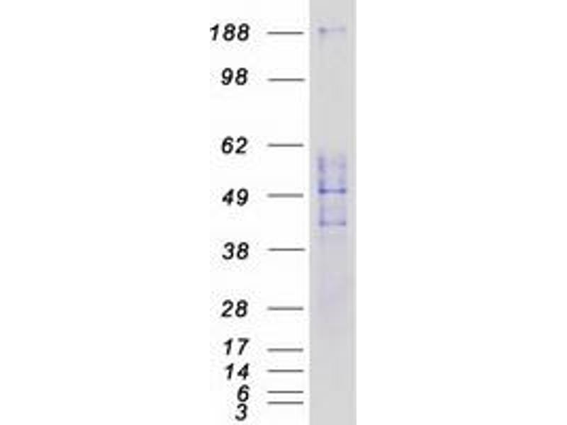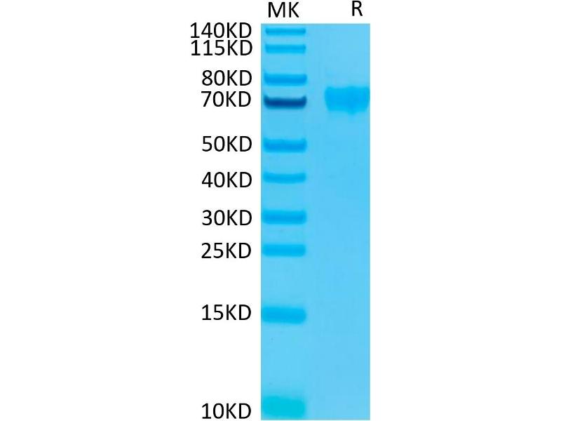 The purity of the protein is greater than 85 % as determined by SDS-PAGE and Coomassie blue staining.