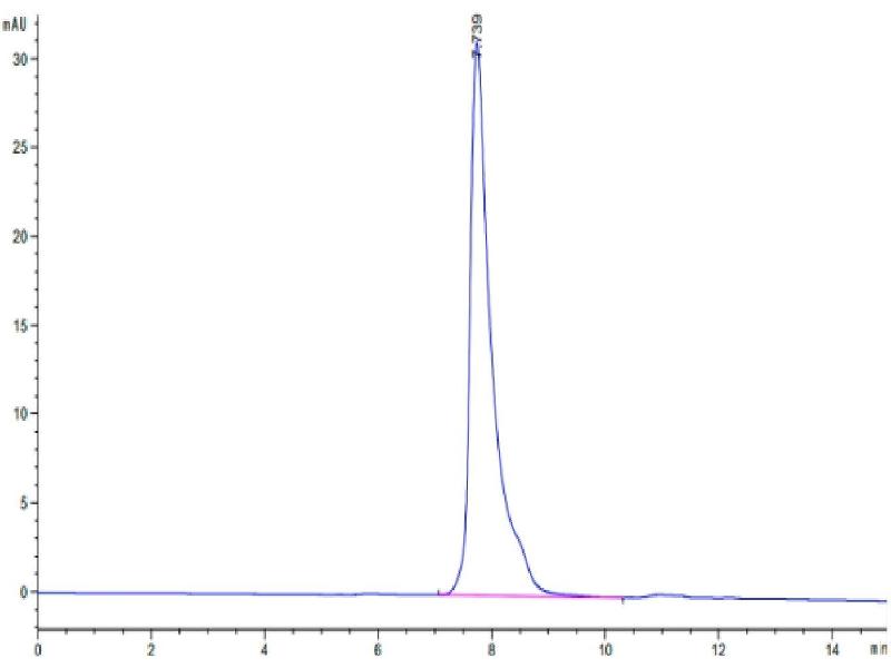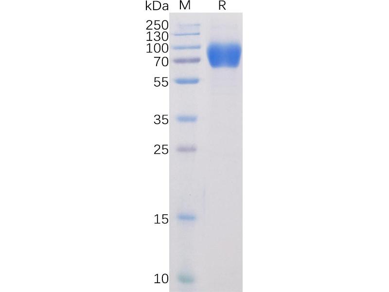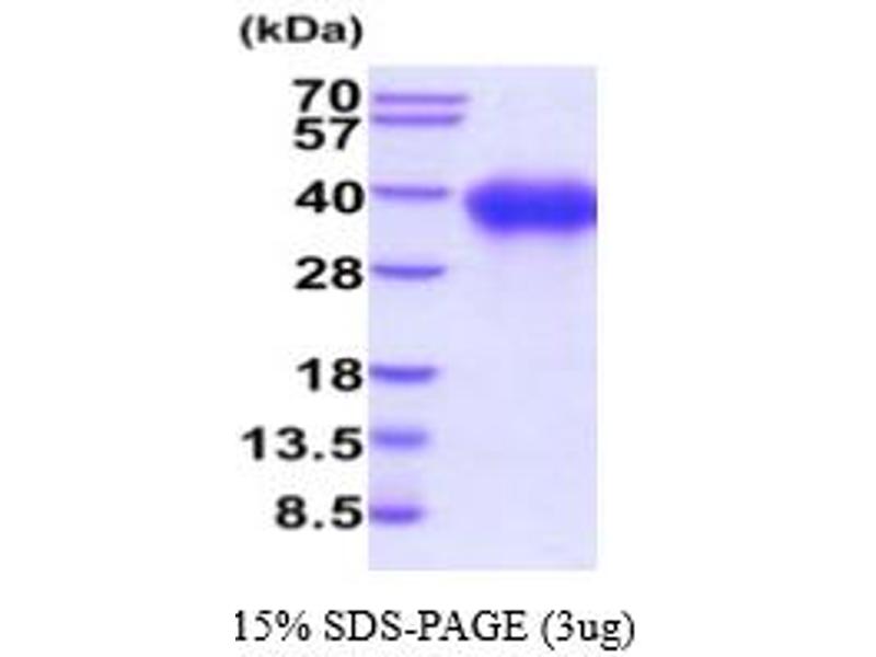 The purity of the protein is greater than 95 % as determined by SDS-PAGE and Coomassie blue staining.