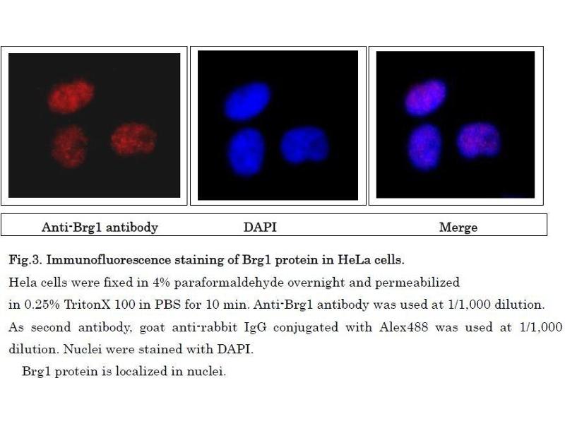 : "Production of a rat monoclonal antibody against Brg1." in: Hybridoma (2005), Vol. 28, Issue 6, pp. 463-6, (2009) (PubMed).