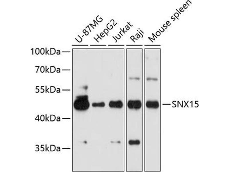 : "Identification and characterization of SNX15, a novel sorting nexin involved in protein trafficking." in: The Journal of biological chemistry, Vol. 276, Issue 7, pp. 5074-84, (2001) (PubMed).Aliases for SNX15 Antibodies