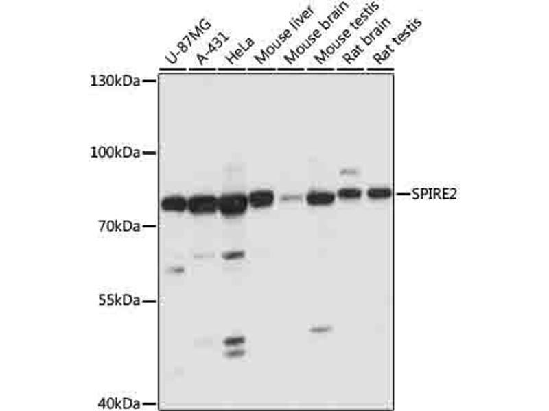 SPIRE2 Reactivity: Human, Mouse, Rat, Cow, Horse, Dog, Pig, Rabbit, Zebrafish (Danio rerio) WB Host: Rabbit Polyclonal unconjugated