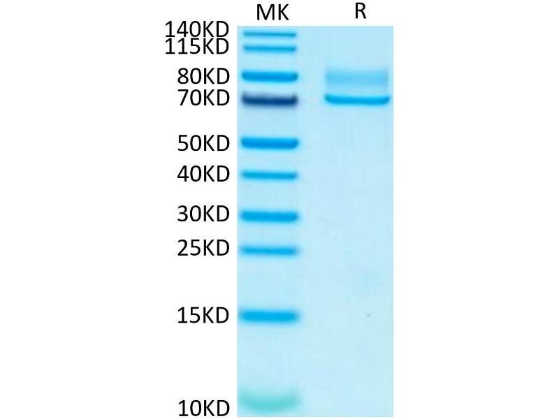 The purity of the protein is greater than 95 % as determined by SDS-PAGE and Coomassie blue staining.