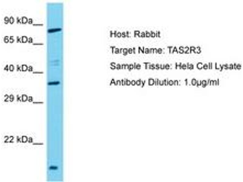 : "Analysis of the expression of human bitter taste receptors in extraoral tissues." in: Molecular and cellular biochemistry, Vol. 426, Issue 1-2, pp. 137-147, (2016) (PubMed).Aliases for TAS2R3 Antibodies