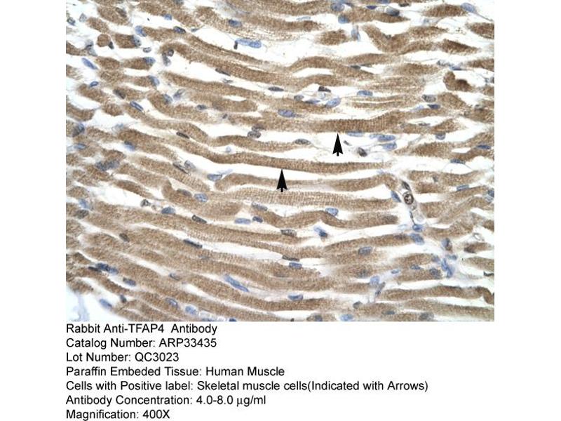 TFAP4 Reactivity: Human, Mouse, Dog, Rabbit, Cow, Monkey, Hamster WB, IHC, IHC (p) Host: Rabbit Polyclonal unconjugated