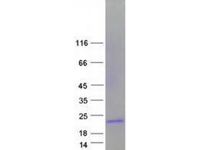 The purity of the protein is greater than 95 % as determined by SDS-PAGE and Coomassie blue staining.