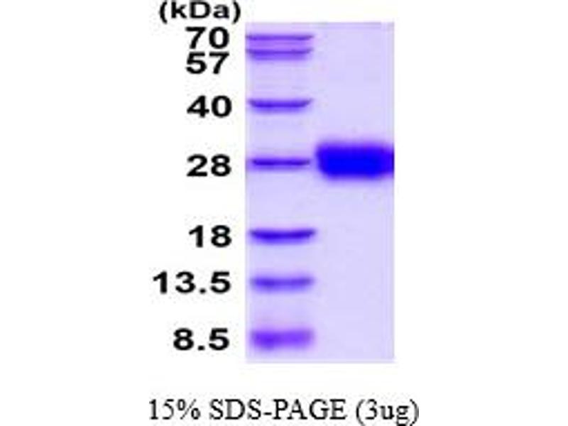 The purity of the protein is greater than 95 % as determined by SDS-PAGE and Coomassie blue staining.