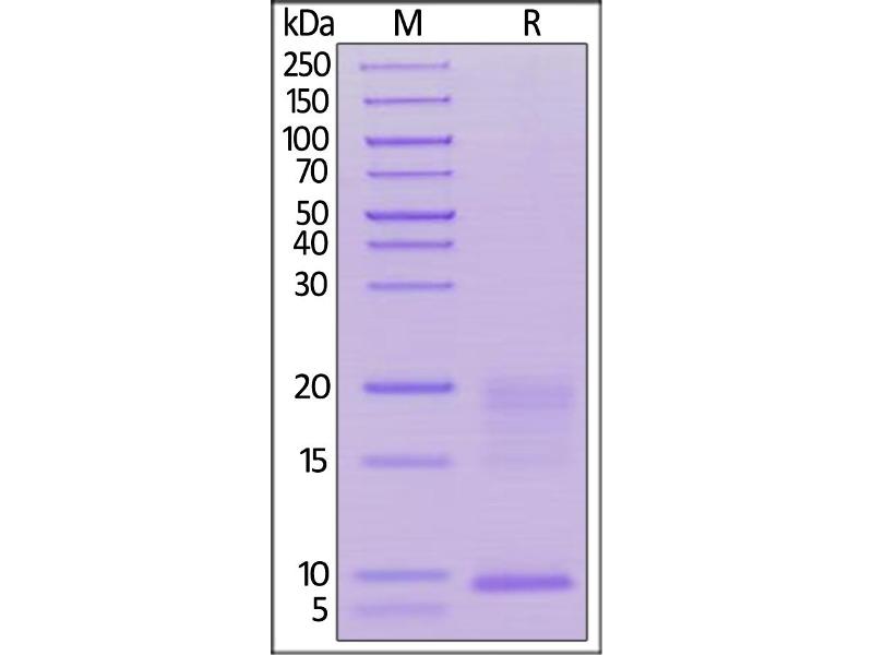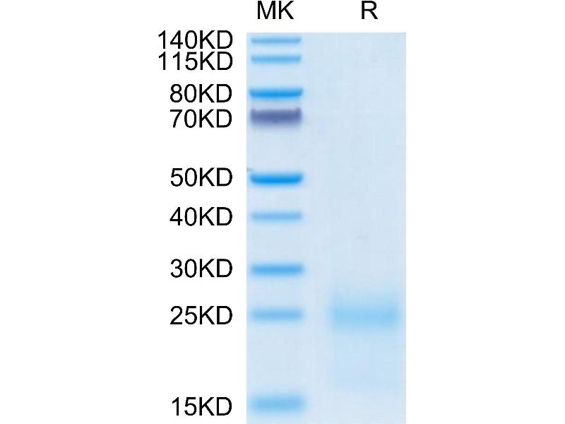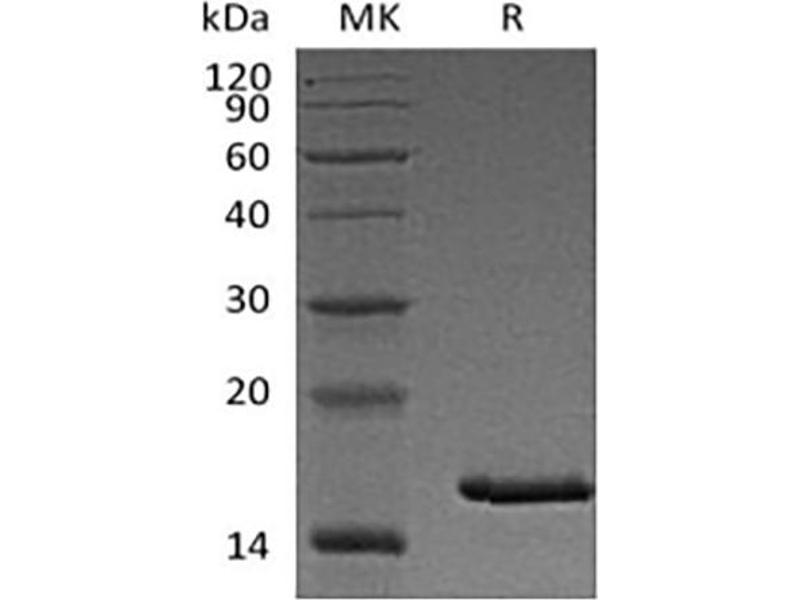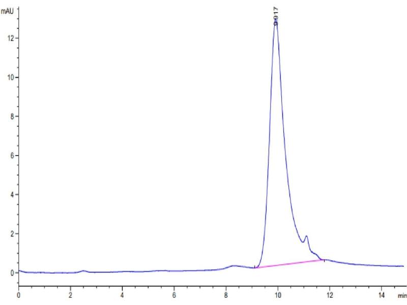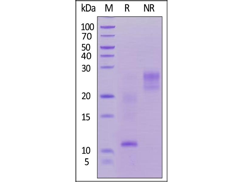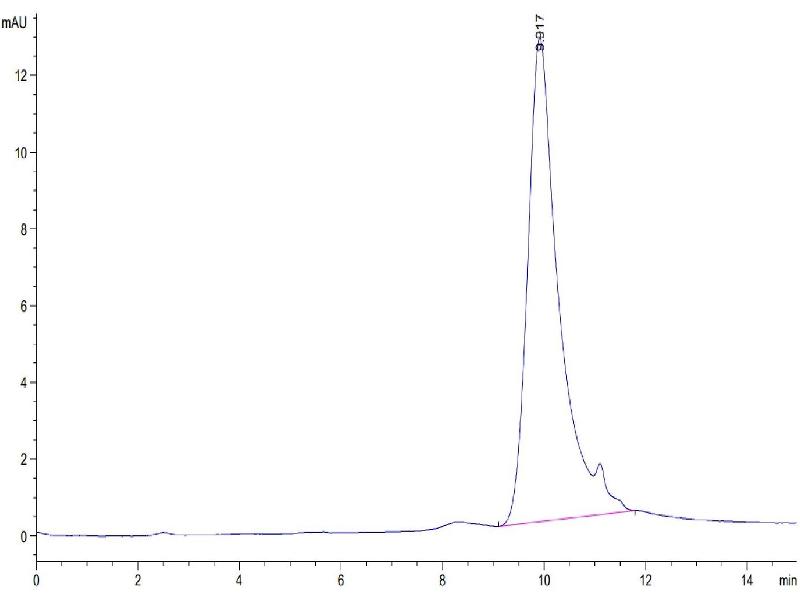 The purity of the protein is greater than 95 % as determined by SDS-PAGE and Coomassie blue staining.