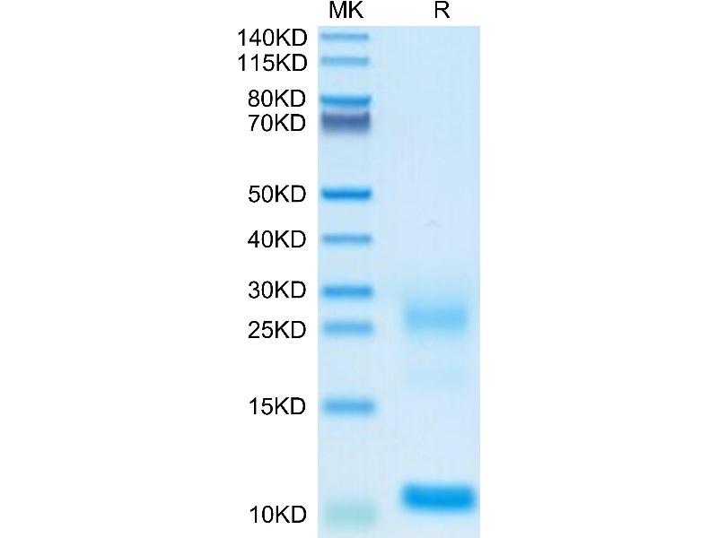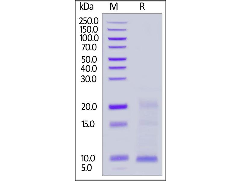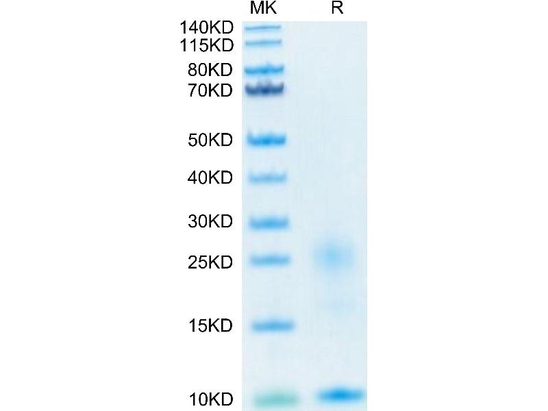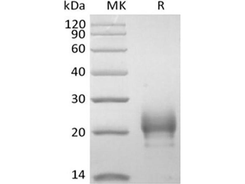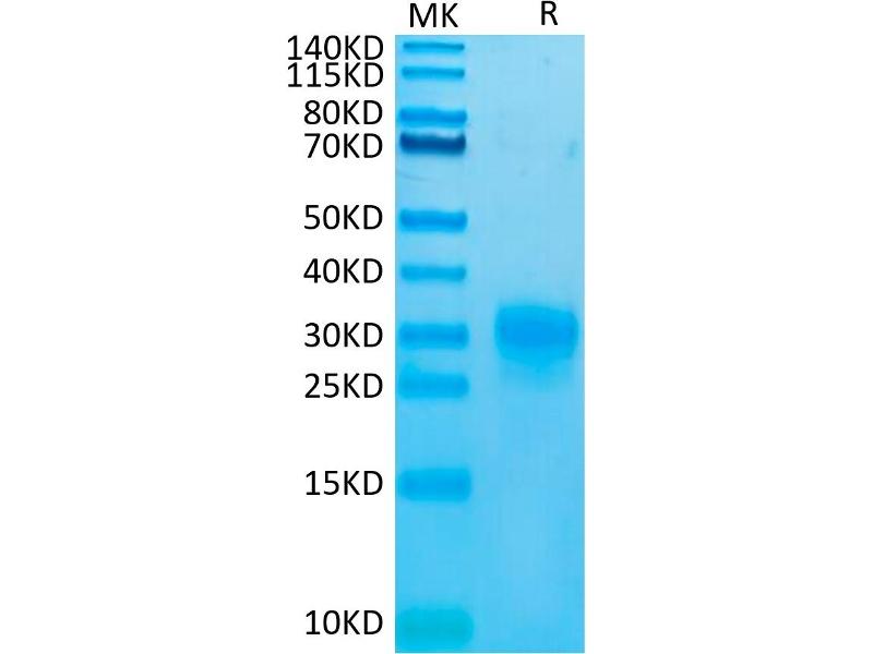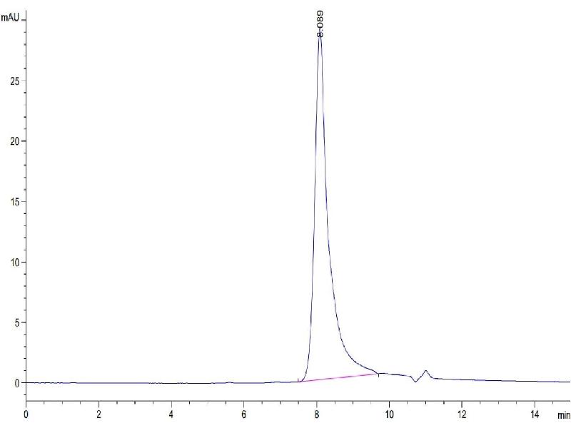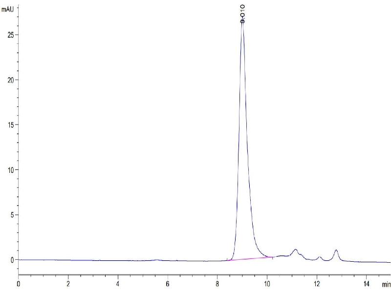 The purity of the protein is greater than 95 % as determined by SDS-PAGE and Coomassie blue staining.