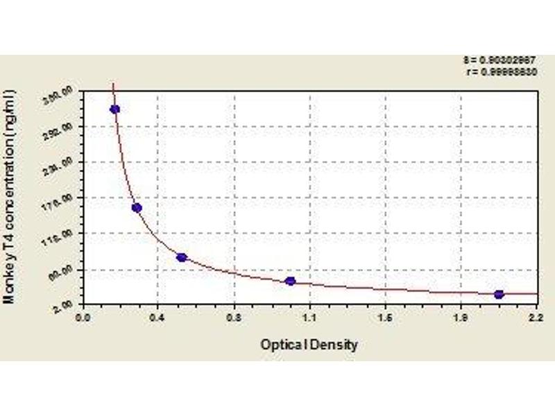 T4 Reactivity: Monkey Colorimetric Competition ELISA 20-320 ng/mL Plasma, Serum, Tissue Homogenate