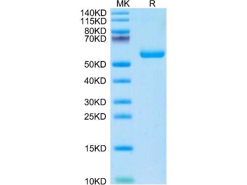 The purity of the protein is greater than 95 % as determined by SDS-PAGE and Coomassie blue staining.