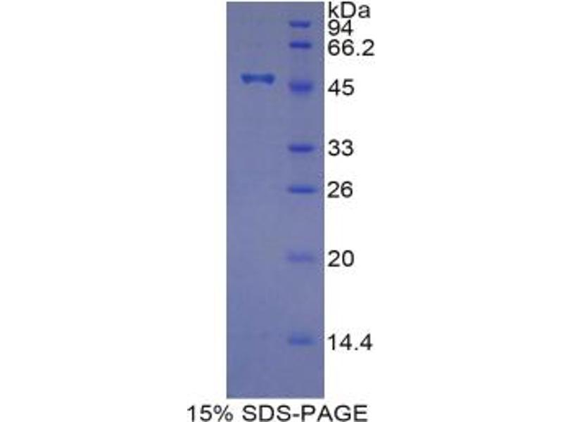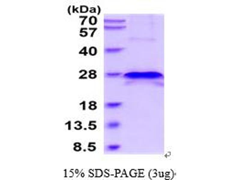 The purity of the protein is greater than 95 % as determined by SDS-PAGE and Coomassie blue staining.