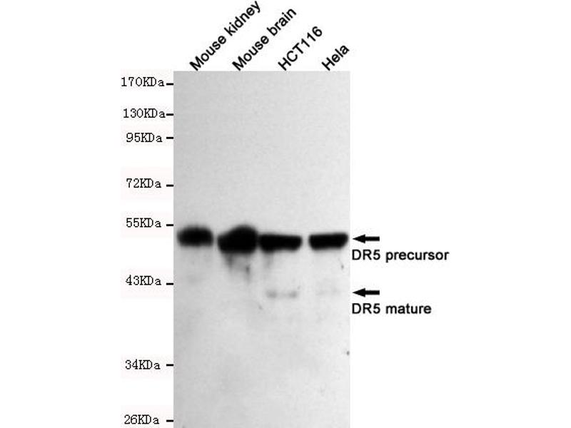 TNFRSF10B Reactivity: Human, Mouse WB, IHC, ICC, IF, IHC (p) Host: Rabbit Polyclonal unconjugated
