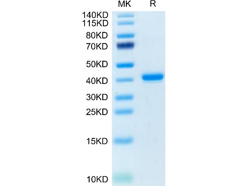 The purity of the protein is greater than 95 % as determined by SDS-PAGE and Coomassie blue staining.