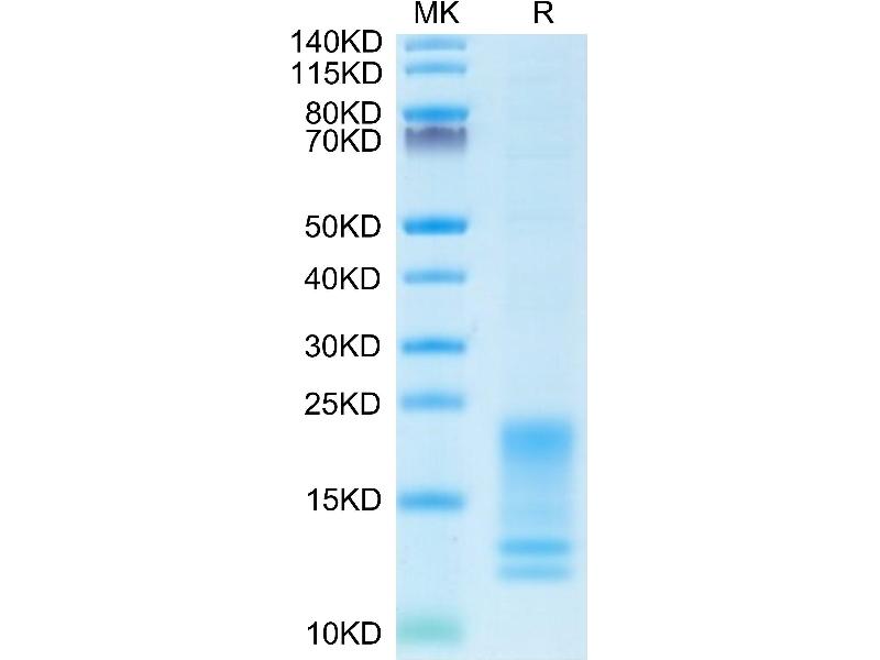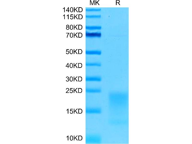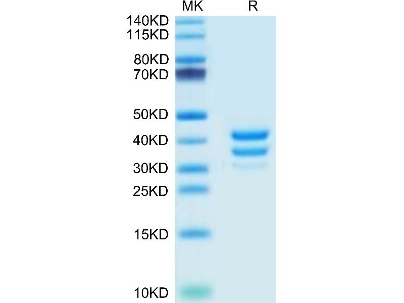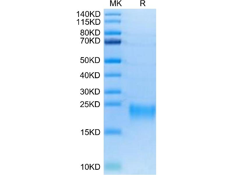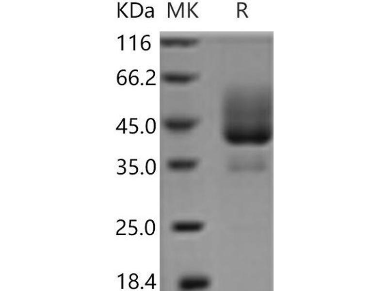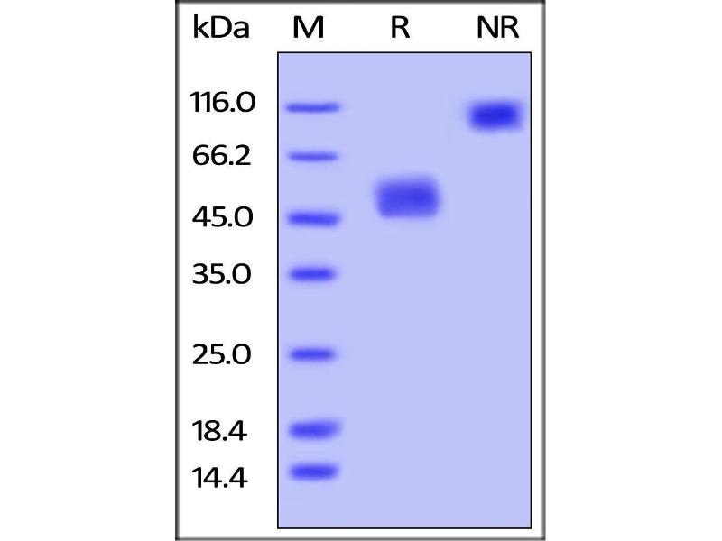 The purity of the protein is greater than 95 % as determined by SDS-PAGE and Coomassie blue staining.