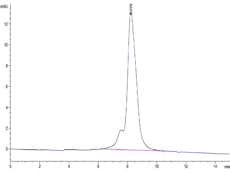 The purity of the protein is greater than 95 % as determined by SDS-PAGE and Coomassie blue staining.