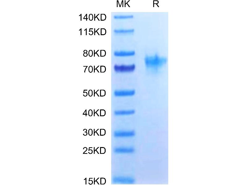 The purity of the protein is greater than 95 % as determined by SDS-PAGE and Coomassie blue staining.
