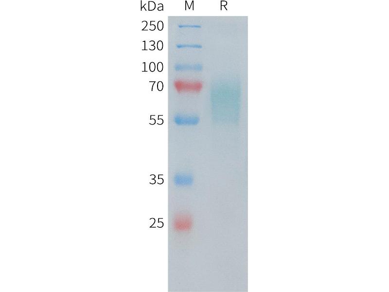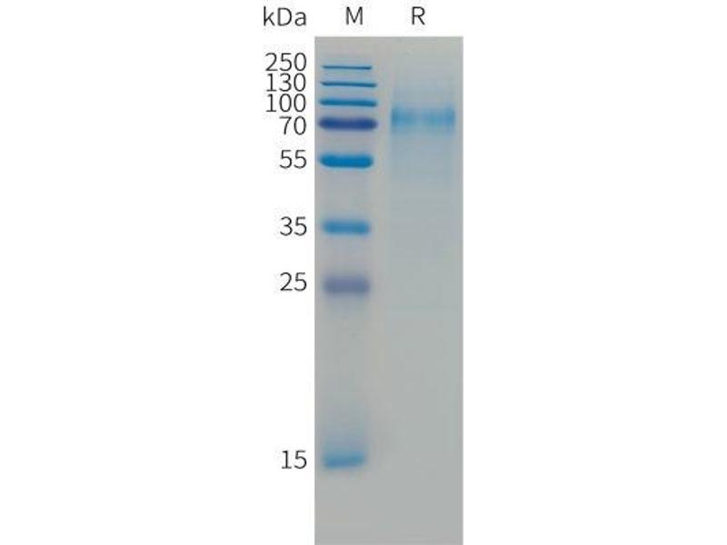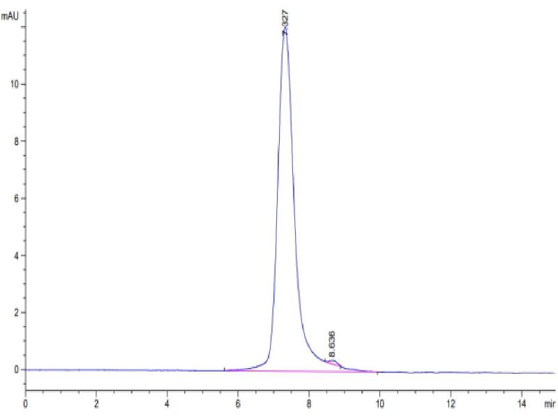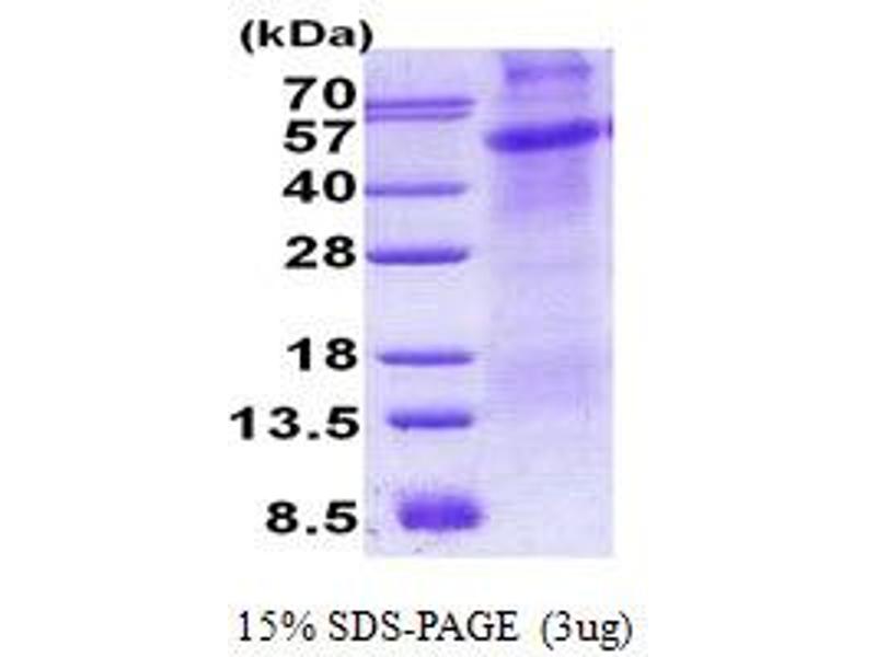 The purity of the protein is greater than 95 % as determined by SDS-PAGE and Coomassie blue staining.