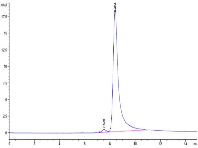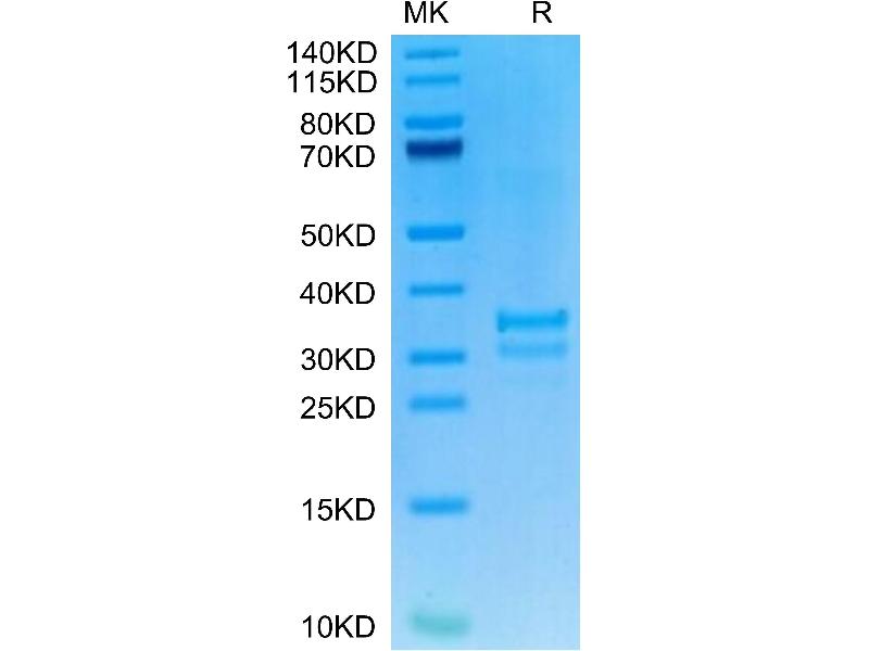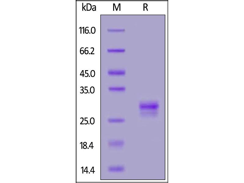 The purity of the protein is greater than 95 % as determined by SDS-PAGE and Coomassie blue staining.