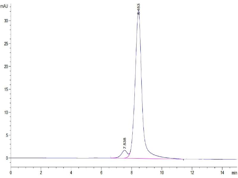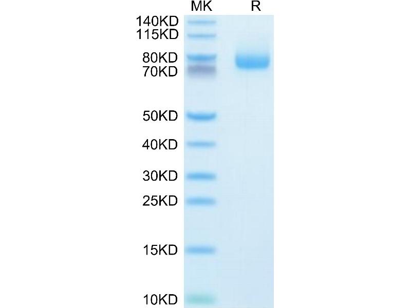 The purity of the protein is greater than 95 % as determined by SDS-PAGE and Coomassie blue staining.