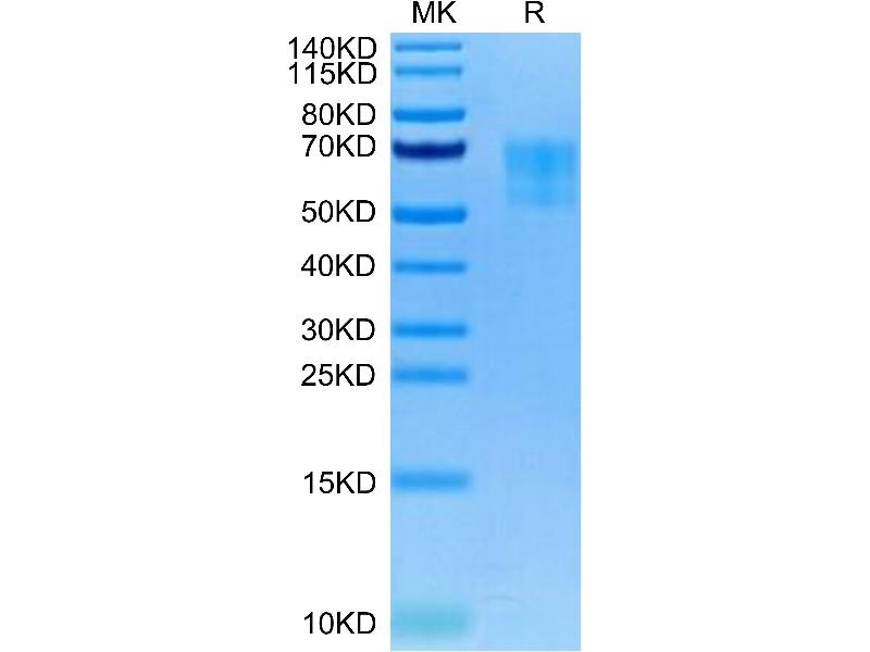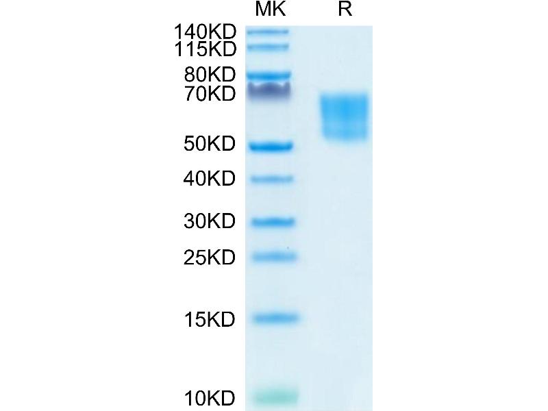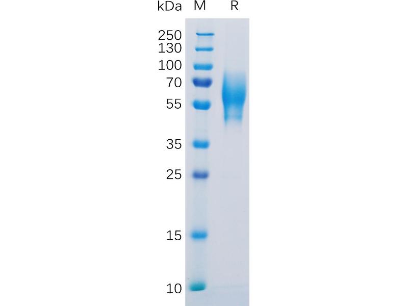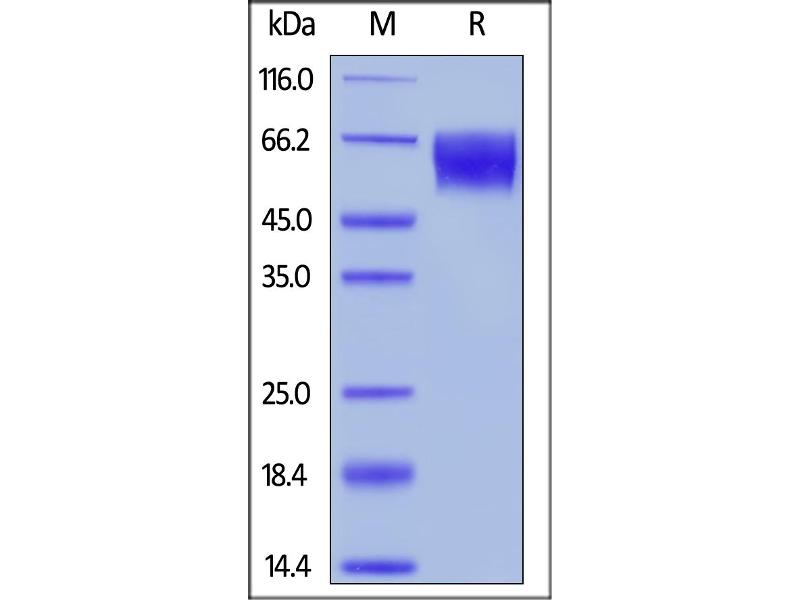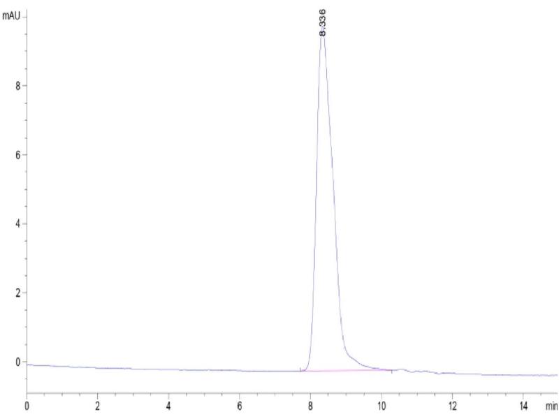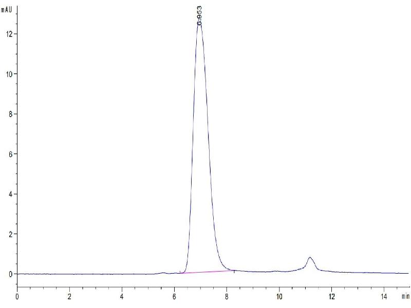 The purity of the protein is greater than 95 % as determined by SDS-PAGE and Coomassie blue staining.